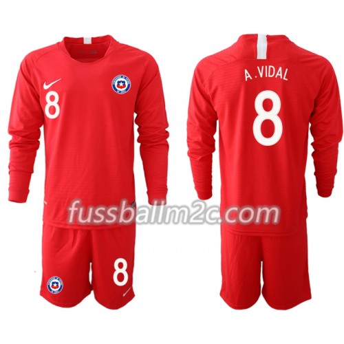 Fußballtrikots Chile A. VIDAL 8 Kinder Heim Trikotsatz 2018-2019 Langarm