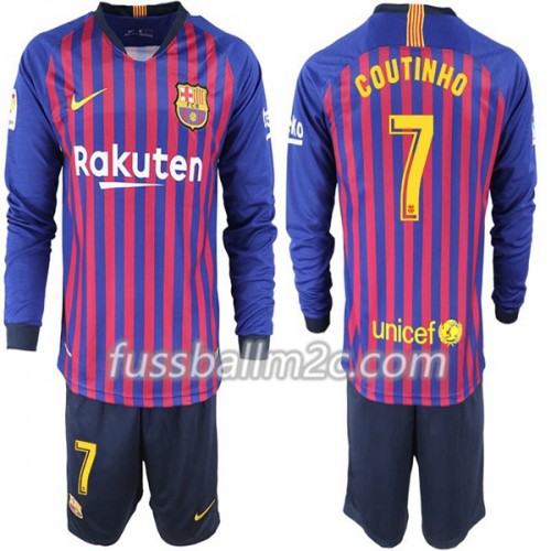 Fußballtrikots FC Barcelona Coutinho 7 Kinder Heim Trikotsatz 2018-2019 Langarm