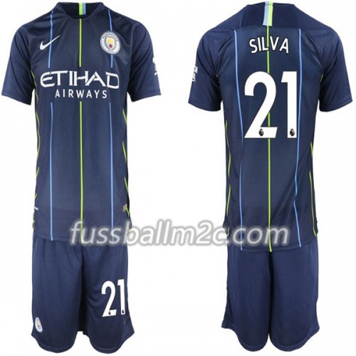 Fußballtrikots Manchester City David Silva 21 Kinder Auswärts Trikotsatz 2018-2019